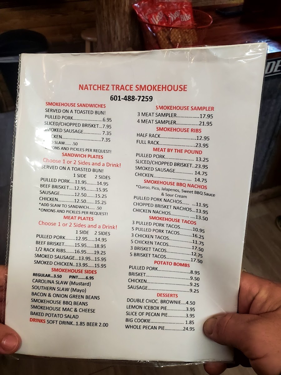 Overall, the menu at Natchez Trace Smokehouse offers a well-rounded and satisfying dining experience with options that cater to various tastes and preferences. Whether you’re enjoying a sandwich, a hearty meat plate, or indulging in a tasty dessert, every dish reflects the restaurant’s dedication to flavorful, smoked perfection.